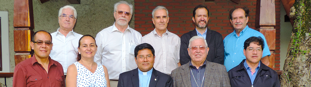 Arriba: Arq. Adolfo Valenzuela Castedo, Dr. Francesco Zaratti Sacchetti, Lic. Juan Carlos Requena Pinto, Dr. Carlos Gerke Siles, Ing. Herbert Muller Costa. Abajo: Jorge Machicao Villarubia, Lic. Paula Peña Hasbún, Mons. Jorge Herbas Balderrama, Mons. Jesús Juárez Párraga, Armando Sejas Escalera.